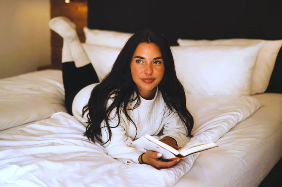 Mit Sitzecke, Boxspringbett und Balkon direkt ins Grüne.