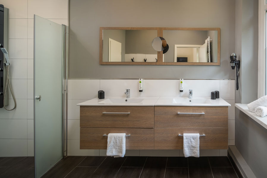 - Großzügiges Bad mit zwei Waschtischen & separater Toilette
